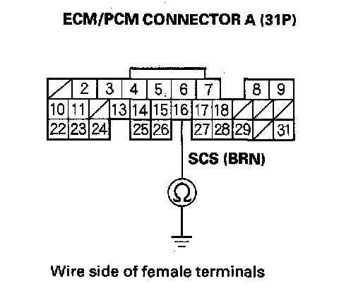 16. Check for continuity between ECM/PCM connector terminal A16 and body ground.
