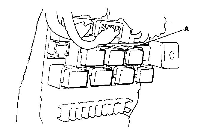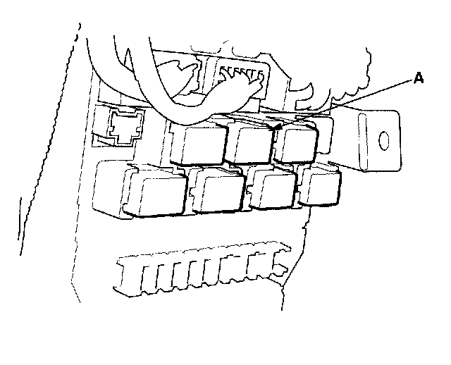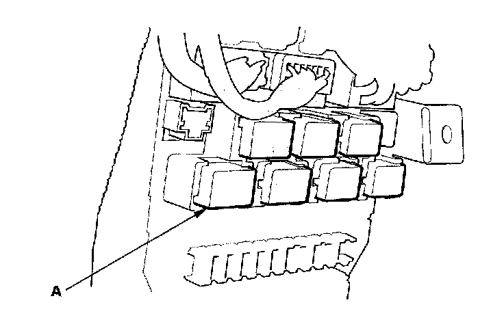 26. Remove the left kick panel, then remove the PGM-FI main relay 1 (FI MAIN) (A) from the under-hood fuse/relay box.