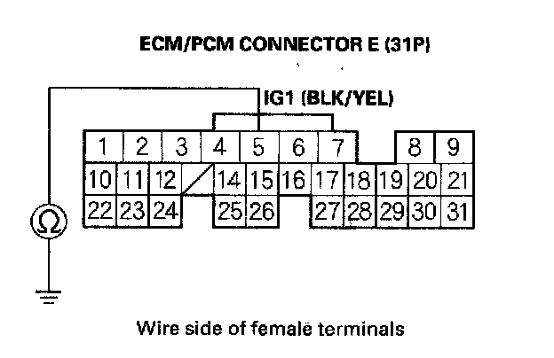 37. Check for continuity between ECM/PCM connector terminal E5 and body ground.