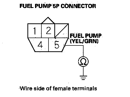 43. Check for continuity between fuel pump 5P connector terminal No.5 and body ground.