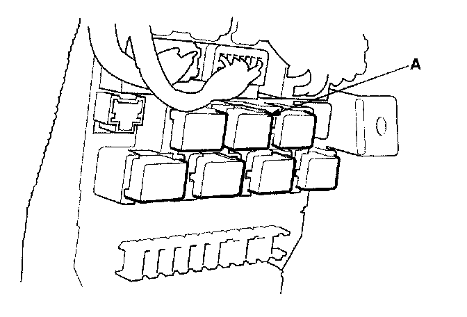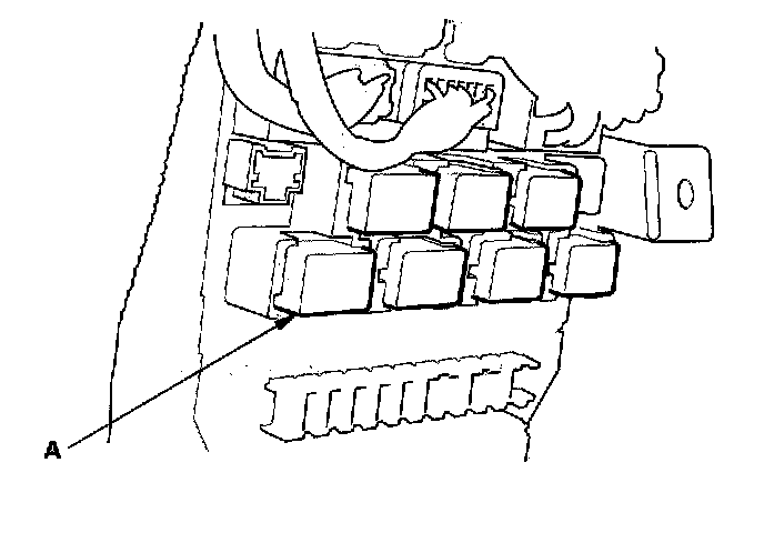 36. Remove the kick panel. Then remove PGM-FI main relay 2 (FUEL PUMP) (A) from the under-hood fuse/relay box.