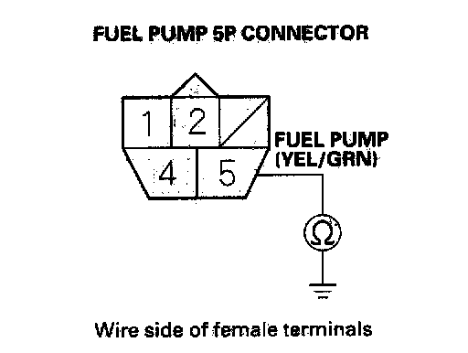 41. Check for continuity between fuel pump 5P connector terminal No.5 and body ground.