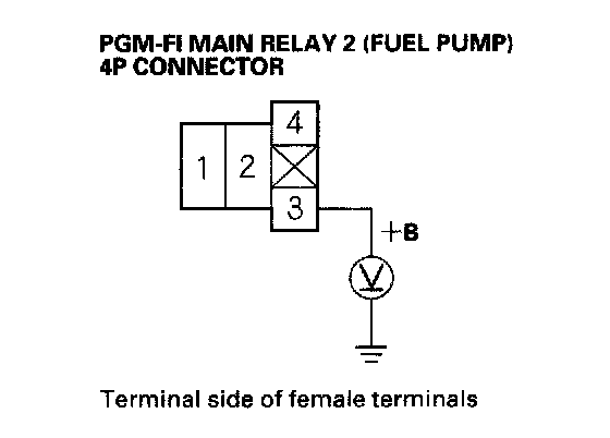 59. Measure voltage between PGM-FI main relay 1 4P connector terminal No.2 and body ground.