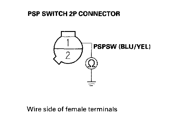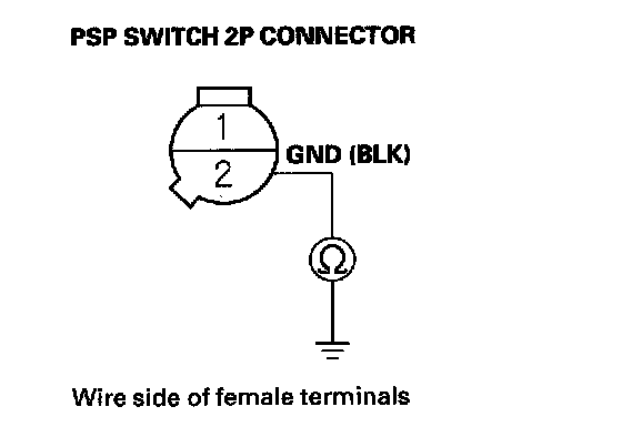 11. Check for continuity between PSP switch 2P connector terminal No.1 and body ground.