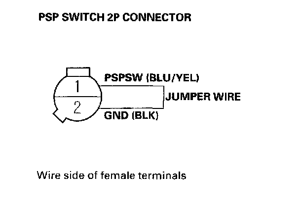 17. Remove the jumper wire from the PSP switch 2P connector.