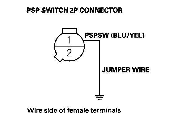 14. Connect PSP switch 2P connector terminals No.1 and No.2 with a jumper wire, then start the engine.