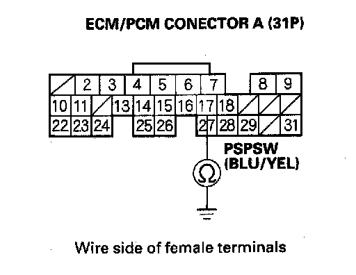 20. Connect the PSP switch 2P connector terminal No.1 to body ground with a jumper wire.