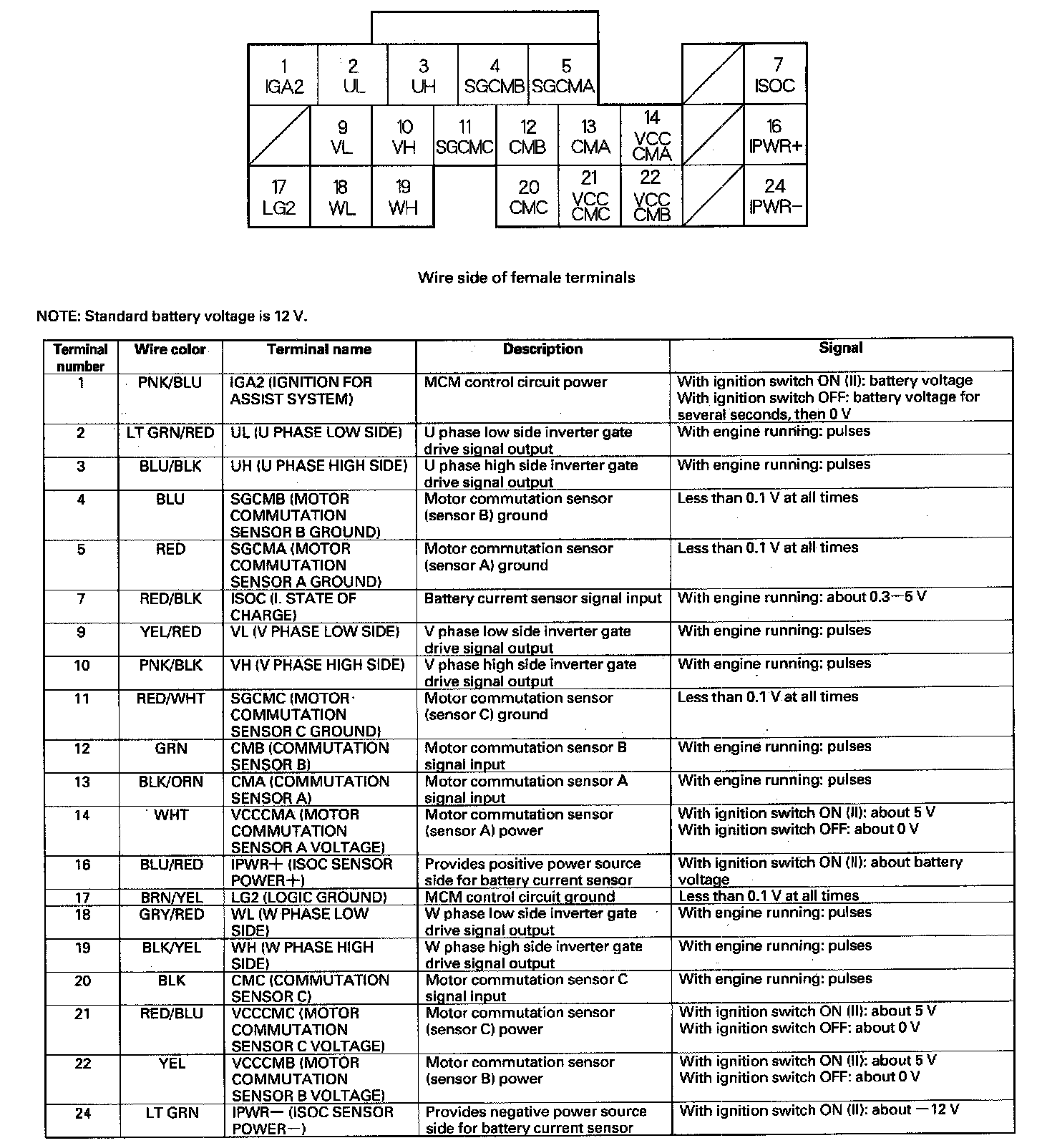 MCM Inputs and Outputs at Connector E (22P)