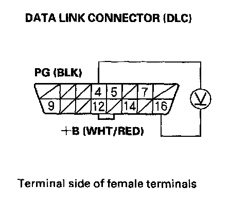 2. Measure voltage between DLC terminals No.4 and No.16.