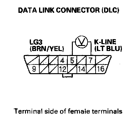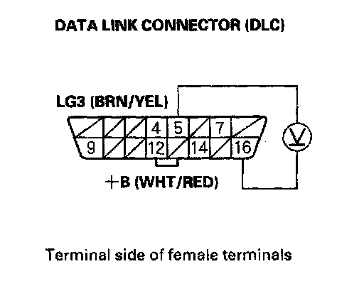 15. Measure voltage between DLC terminals No.5 and No.7.
