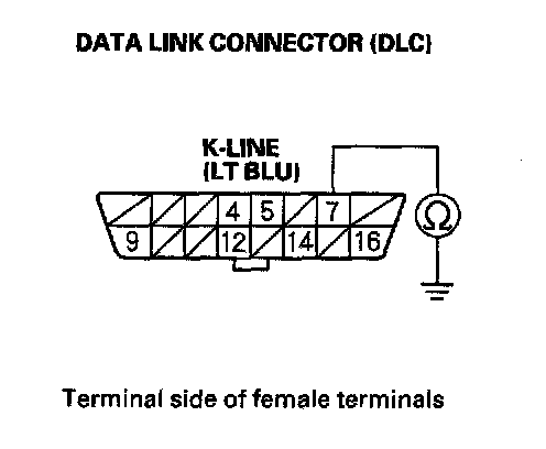 9. Check for continuity between DLC terminal No.7 and body ground.