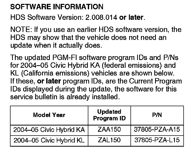 1. Update the PGM-FI software with the HDS. Refer to Service Bulletin 01-023, Updating Control Units/ Modules.