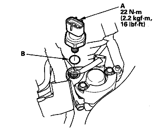 3. Install the sensor in the reverse order of removal with a new O-ring (B).