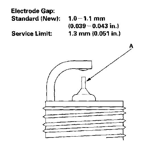 2. Do not adjust the gap of iridium tip plugs (A) replace the spark plug if the gap is out of specification.
