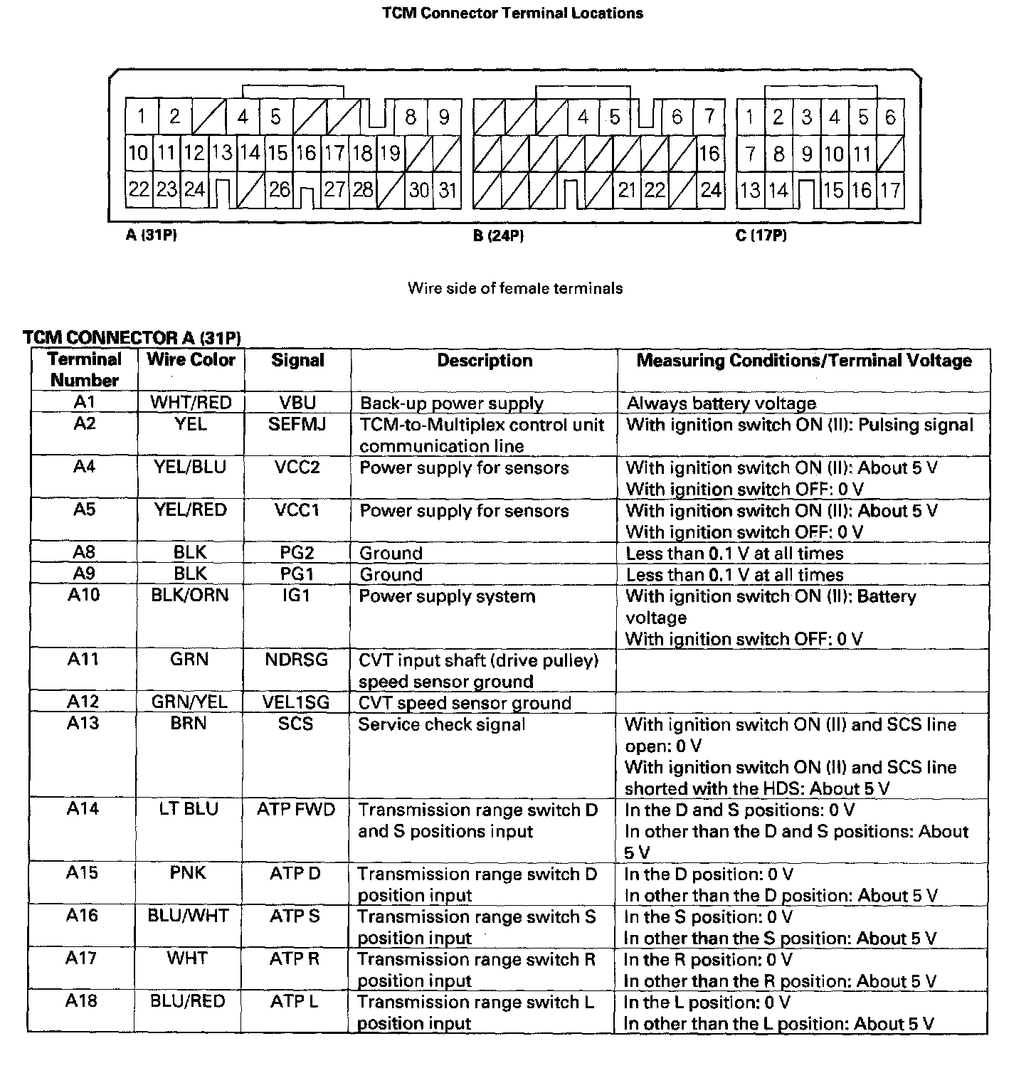 TCM Inputs and OutputsTCM CONNECTOR A (31P), Part 1 Of 2: