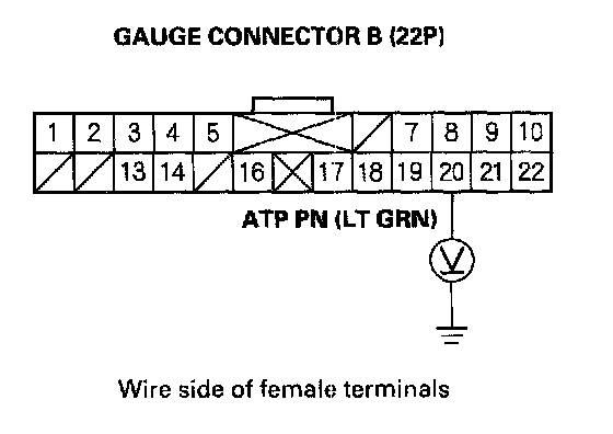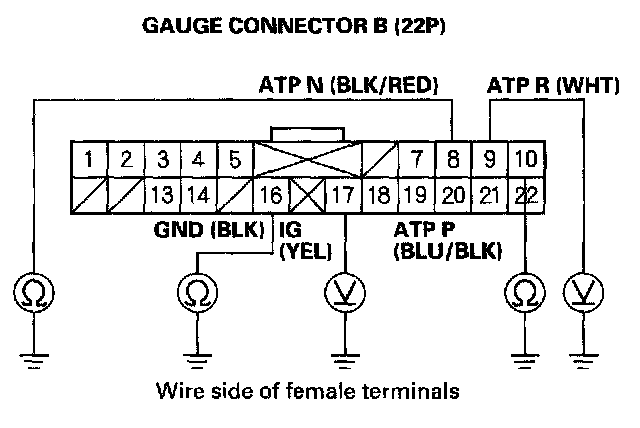 Indicator Input Test1. Remove the gauge assembly, and disconnect gauge connector B (22P).