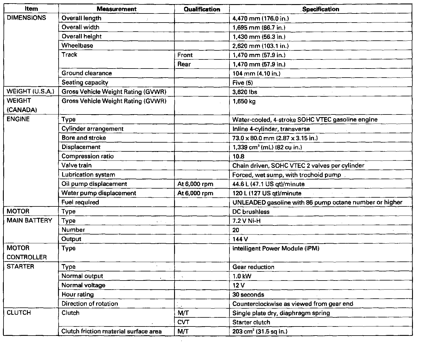 Civic L4-1.3L Hybrid