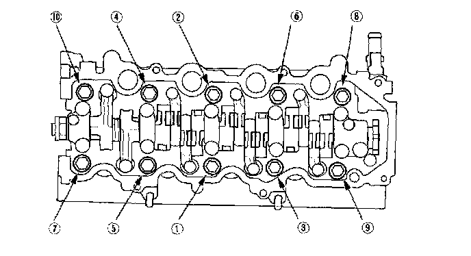 Tighten the cylinder head bolts in sequence to 29 Nm (3.0 kgf-cm, 22 ft. lbs.), use a beam-type torque wrench. When using a preset-type torque wrench, be sure to tighten slowly and do not overtighten. If a bolt makes any noise while you are torquing it, loosen the bolt and retighten it from the first step.