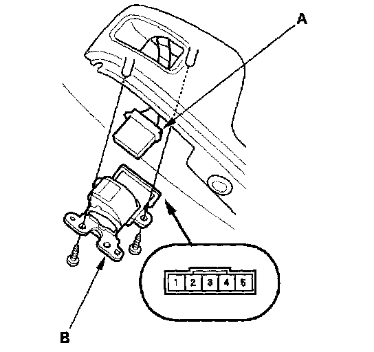 2. Disconnect the 5P connector (A) from the passenger's power window switch (B).