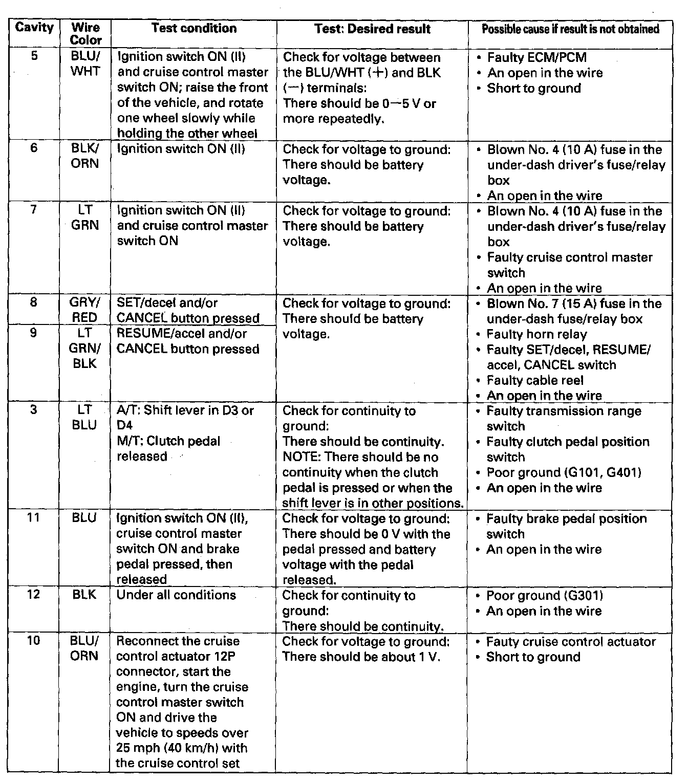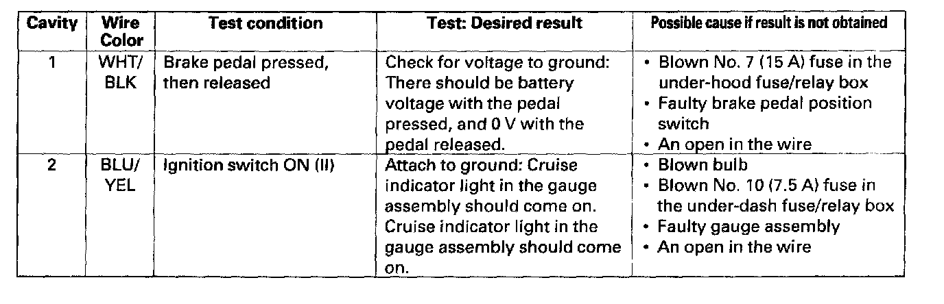 Cruise Control Actuator Input Test2-door D17A1, D17A2 engines
