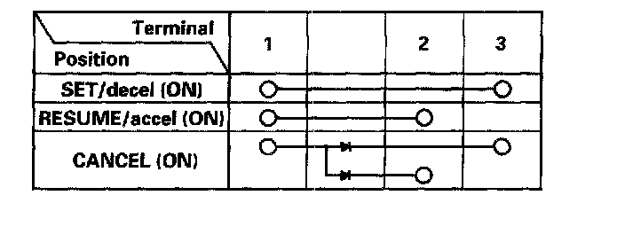 - If there is continuity, and it matches the table, but switch failure has occurred during the cruise control unit input test, check and repair the wire harness on the switch circuit.