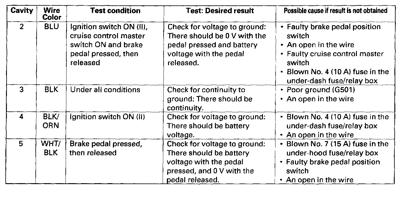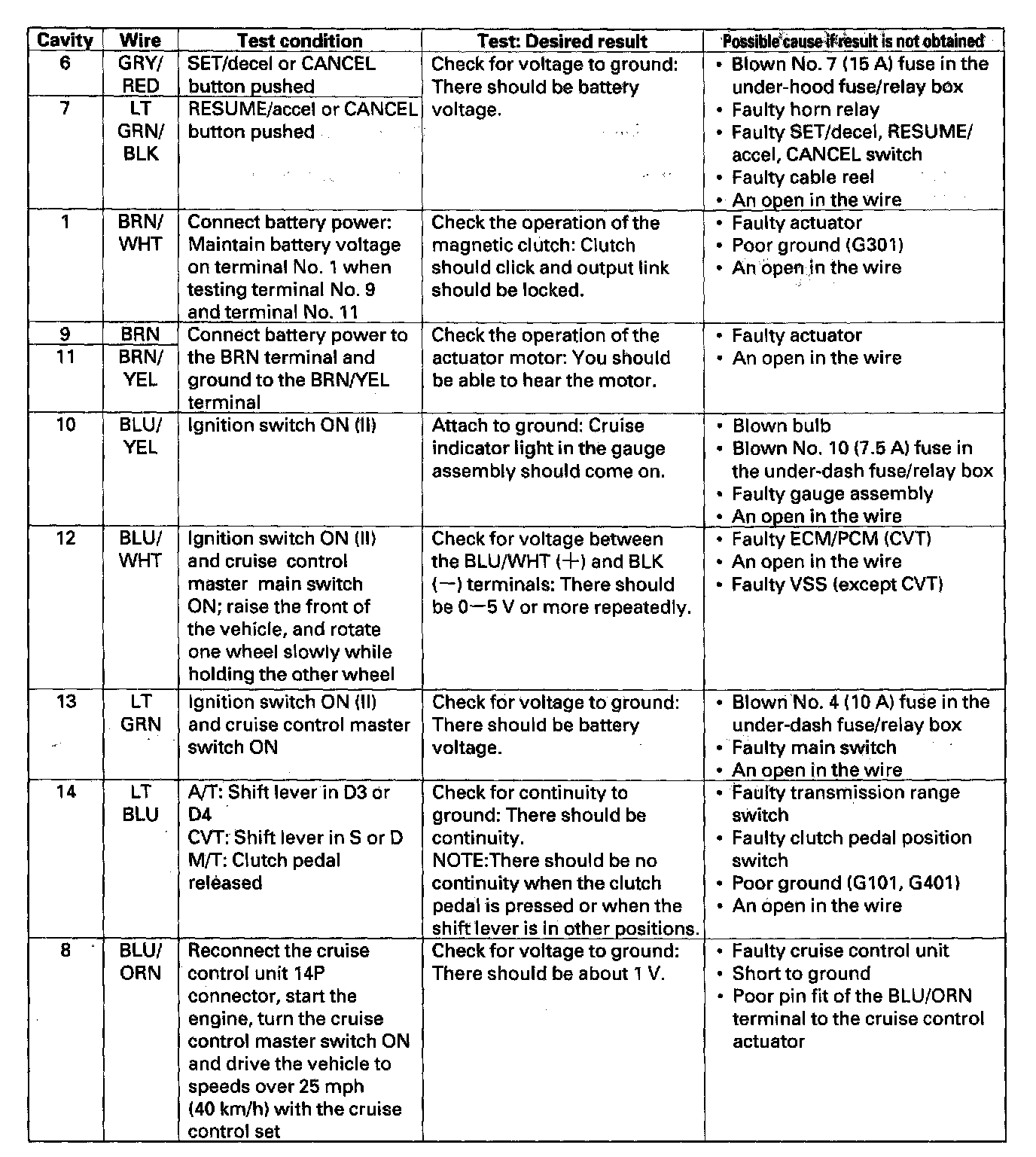 Cruise Control Unit Input TestExcept 2-door D17A1, D17A2 engines