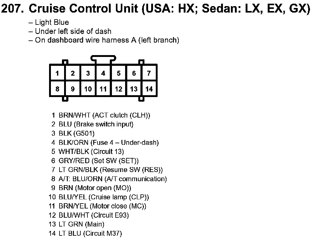 207. Cruise Control Unit (USA: HX; Sedan: LX, EX, GX):