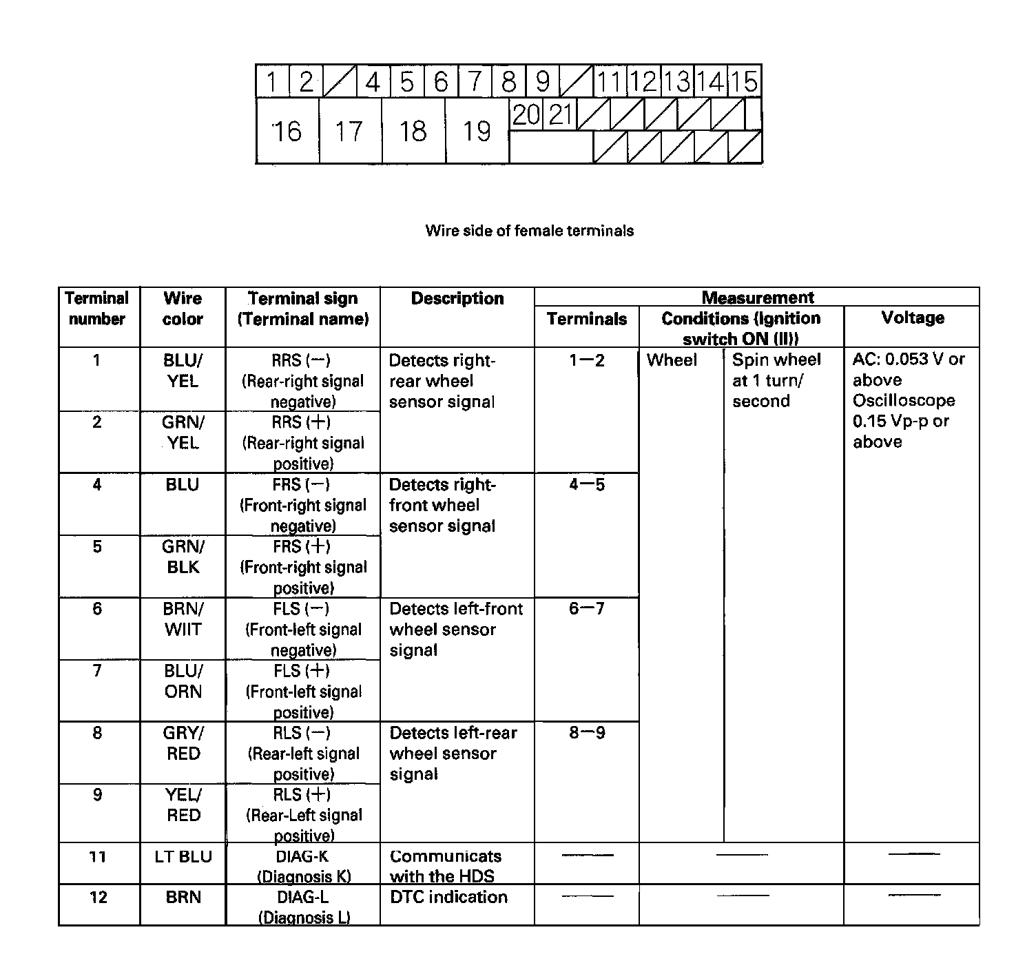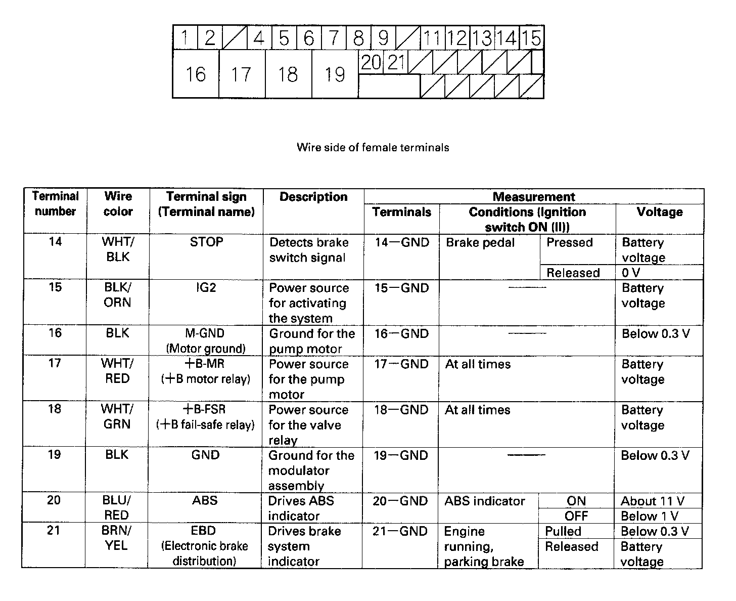 ABS Control Unit Inputs and Outputs for 31P Connector - Part 1:
