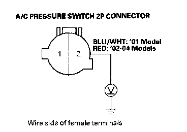 3. Measure the voltage between the No.2 terminal of the A/C pressure switch 2P connector and body ground.