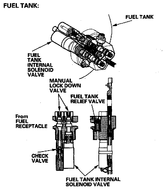 The fuel tank internal solenoid valve is located in the fuel tank. It turns on or off to supply fuel to the engine.