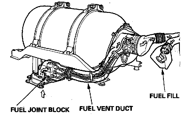 The fuel lines are enclosed in a duct that contains any escaped fuel in case there is a leak in the fill pipe. The fuel is routed to the fuel fill compartment to prevent it from leaking into the trunk or passenger compartment.