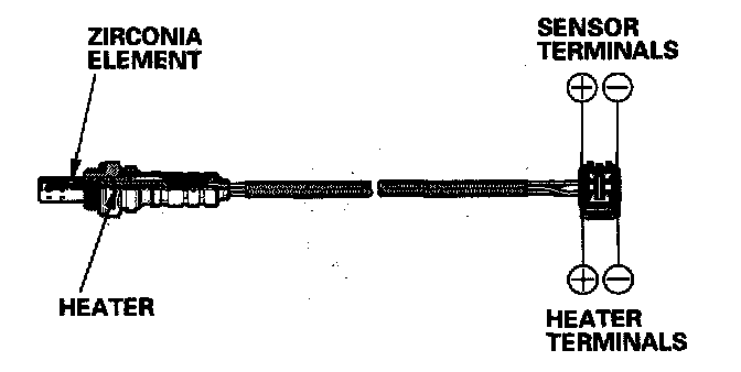 The primary HO2S detects the oxygen content in the exhaust gas and sends signals to the PCM which varies the duration of fuel injection accordingly. To stabilize its output, the sensor has an internal heater. The primary HO2S is installed in the three way catalytic converter (TWC). By controlling the air fuel ratio with the primary HO2S and secondary HO2S, the deterioration of the primary HO2S can be evaluated by its feedback period. When the feedback period exceeds a certain value during stable driving conditions, the sensor is considered deteriorated and the PCM sets a DTC.