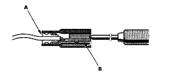 3. If you cannot get to the wire side of the connector or the wire side is sealed (A), disconnect the connector and probe the terminals (B) from the terminal side. Do not force the probe into the connector.