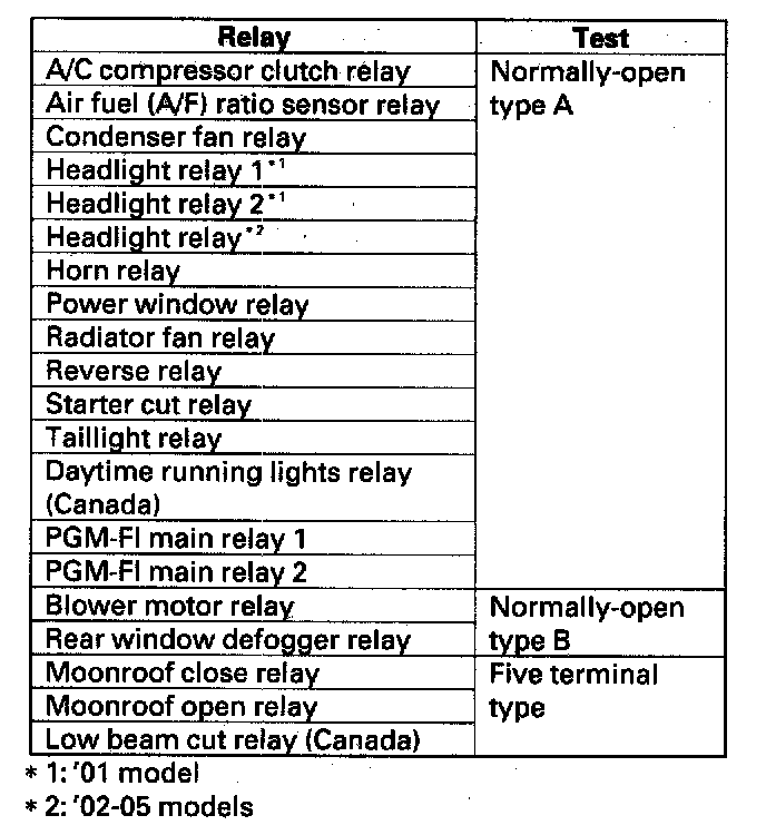 Use this chart to identify the type of relay, then do the test listed for it.