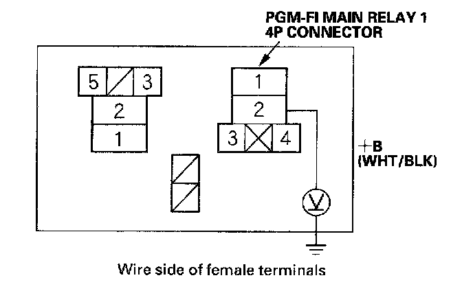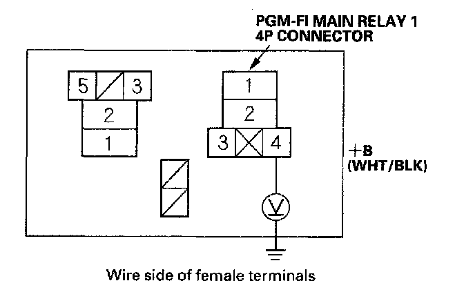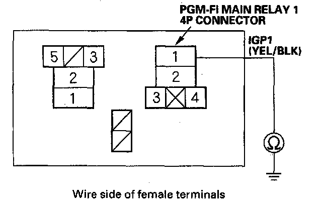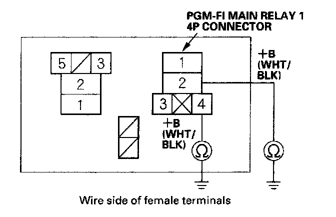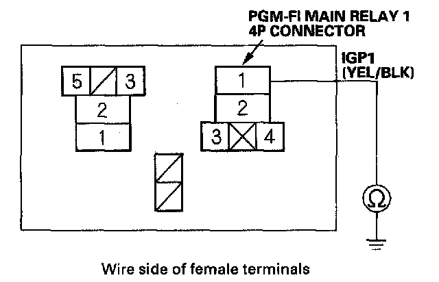 18. Check for continuity between body ground and PGM-FI main relay 14P connector terminals No.2 and No.4 individually.