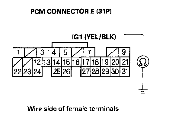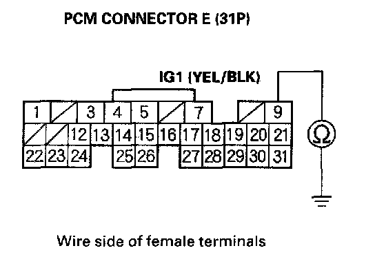 25. Check for continuity between PCM connector terminal E9 and body ground.