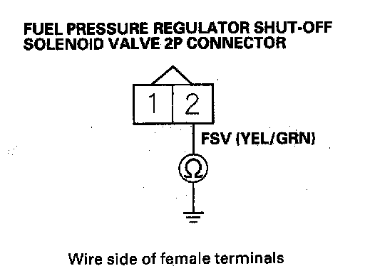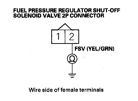 31. Check for continuity between fuel pressure regulator shut-off solenoid valve 2P connector terminal No.2 and body ground.