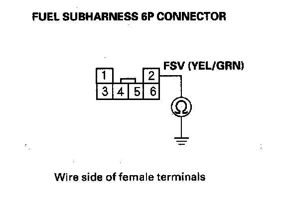 32. Check for continuity between fuel subharness 6P connector terminal No.2 and body ground.