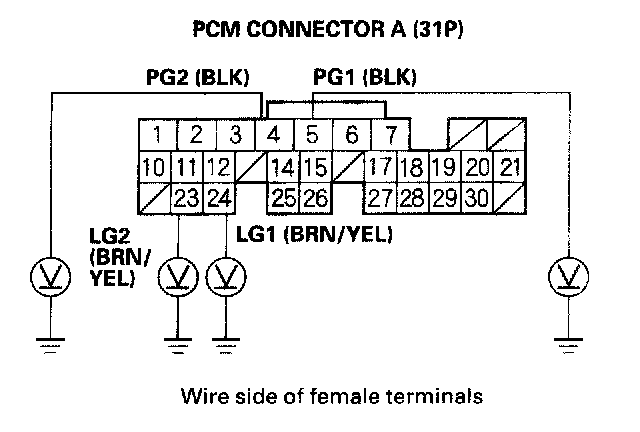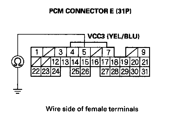 12. Connect PCM connector terminal E31 to body ground with a jumper wire.