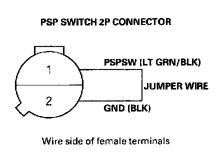 9. At the harness side connect PSP switch 2P connector terminals No.1 and No.2 with a jumper wire.