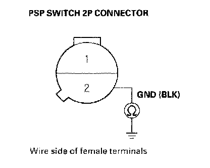 12. Check for continuity between PSP switch 2P connector terminal No.2 and body ground.