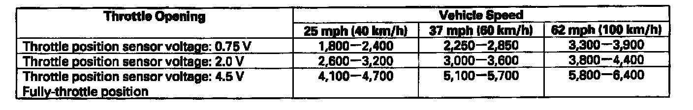 9. Test-drive the vehicle on a flat road in the position shown. While driving, check that the engine speeds meet the approximate vehicle speeds shown in the table.