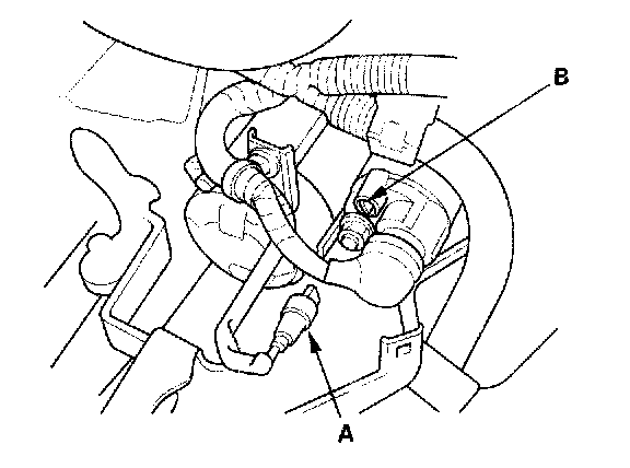 3. Make sure the shift lever is in Neutral, then disconnect the BLK/YEL wire (A) from the starter solenoid (B), then connect a jumper wire from the battery positive terminal to the solenoid terminal