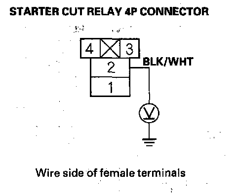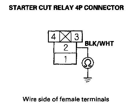 - An open in the wire between starter cut relay 4P connector terminal No. 2 and the ignition switch.