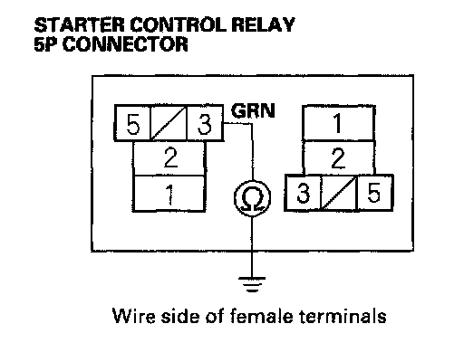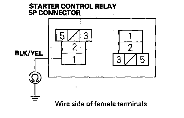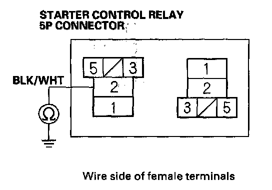 15. Check for continuity between starter control relay 5P connector terminal No. 1 and the starter.