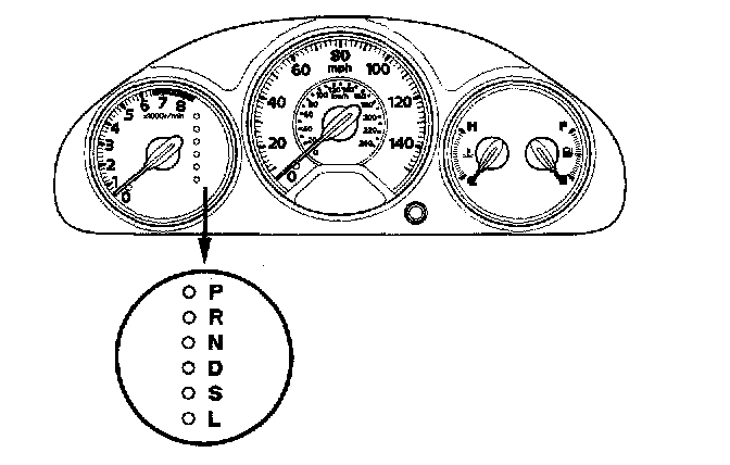 11. Turn the ignition switch ON (II). Move the shift lever through all gear positions, and check the transmission range switch is synchronization with the A/T gear position indicator.