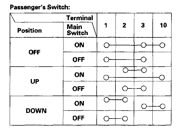 The driver's switch is combined with the control unit so you cannot isolate the switch to test it. Instead, run the master switch input test procedures, If the tests are normal, the driver's switch must be faulty.