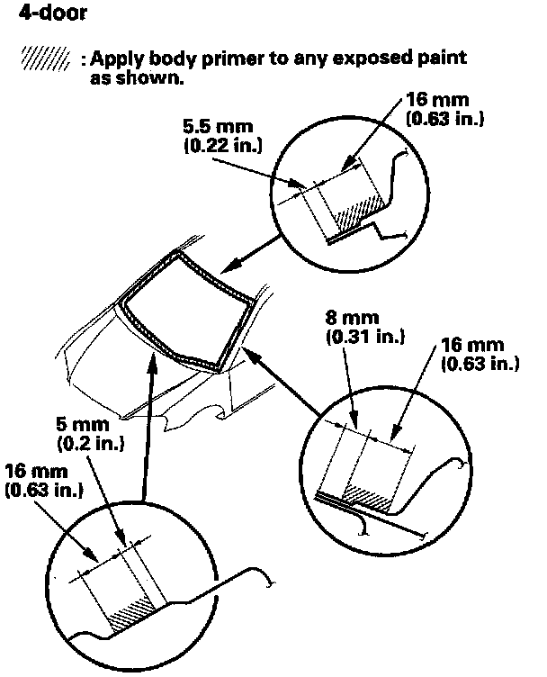 - Never touch the primed surfaces with your hands. If you do, the adhesive may not bond to the windshield properly, causing a leak after the windshield is installed.