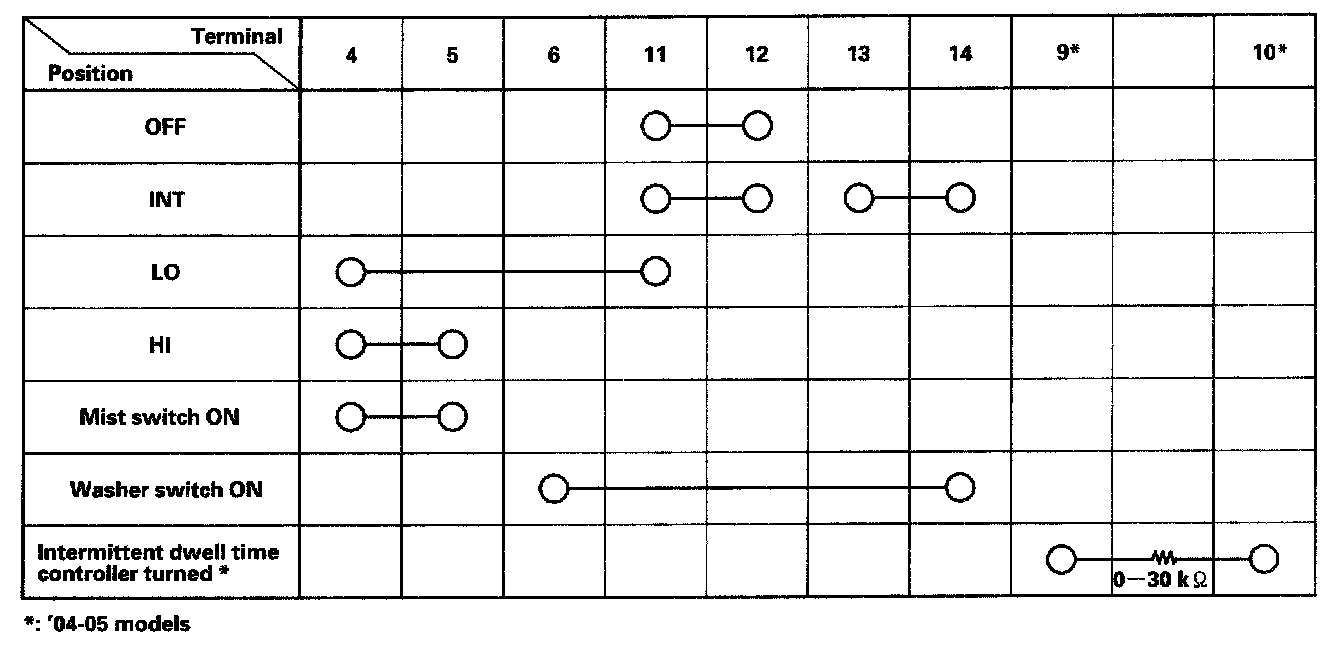 - If the terminals look OK, check for continuity between the terminals in each switch position according to the tables.