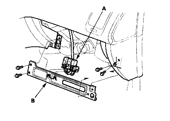 3. Remove the relays (A), then remove the bolts and the glove box frame (B).